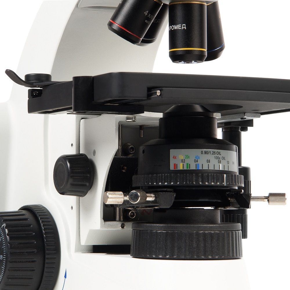 Принципиальное отличие от микроскопов серии Микромед 1 – осветительная система более высокого уровня. Микромед 2 является ярким примером того, что качество изображения в микроскопии зависит не только от уровня оптики, но и возможности правильной настройки освещения. Осветитель с галогенной лампой, центрируемый конденсор Аббе и встроенная в штатив регулируемая полевая диафрагма позволяют настроить равномерное освещение по Кёллеру.