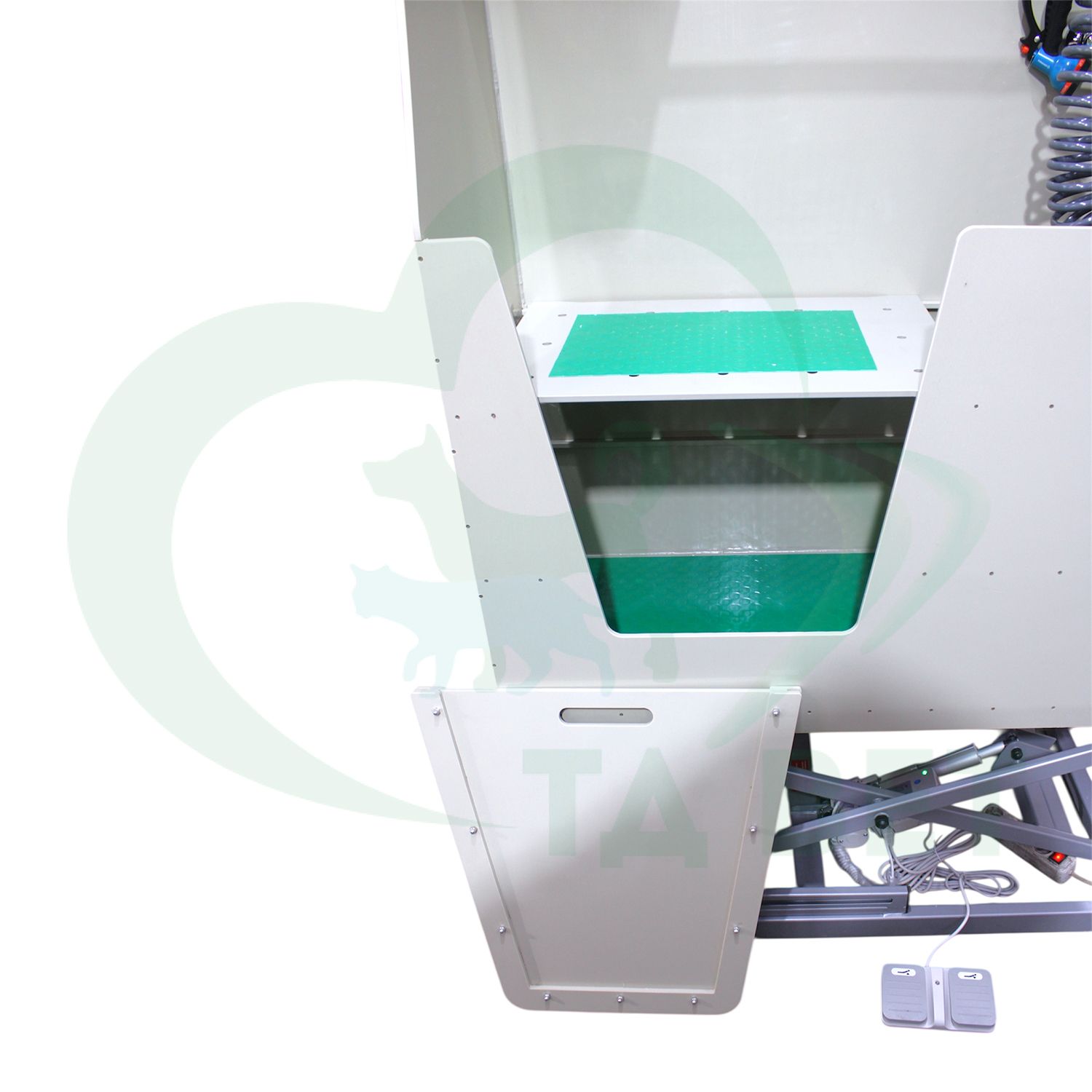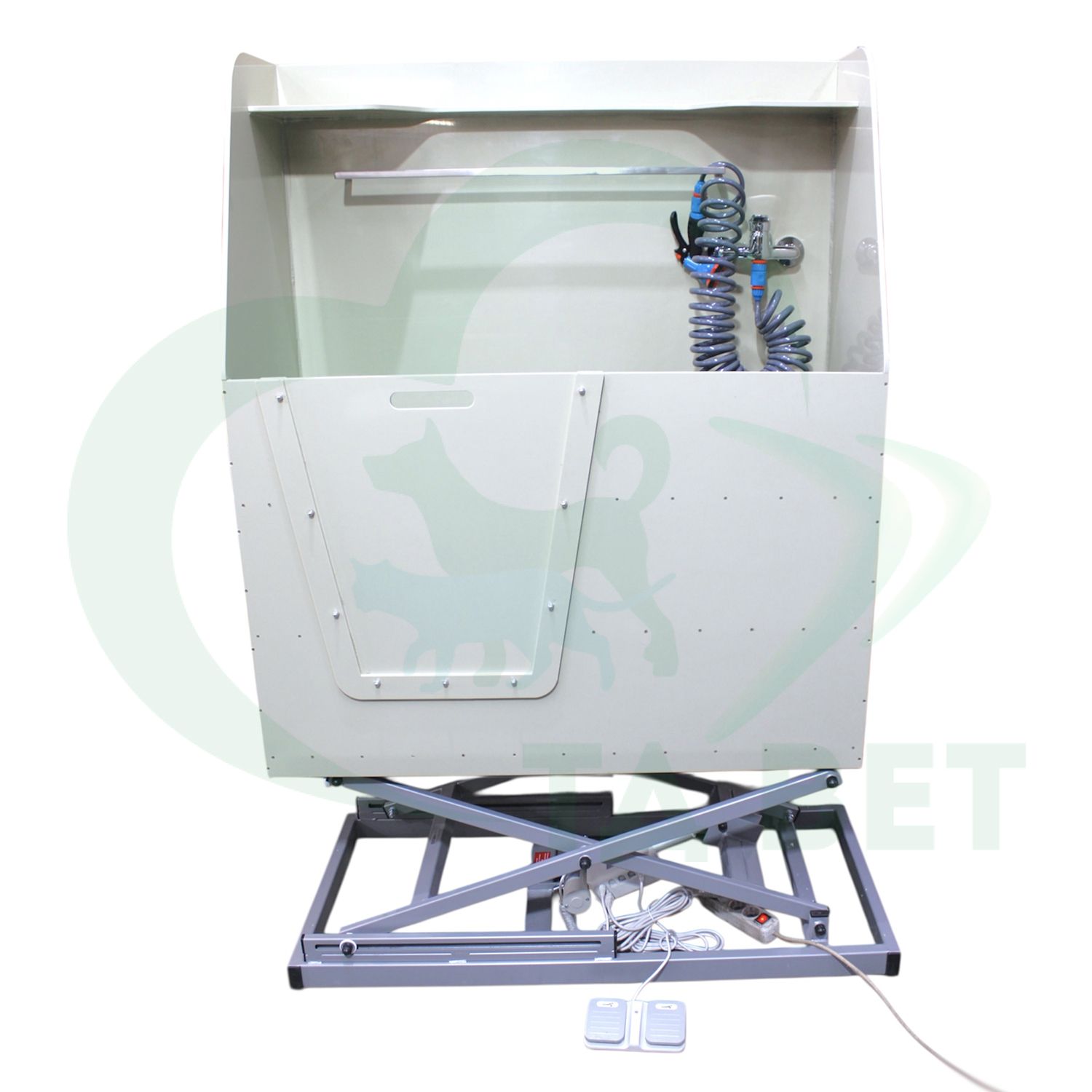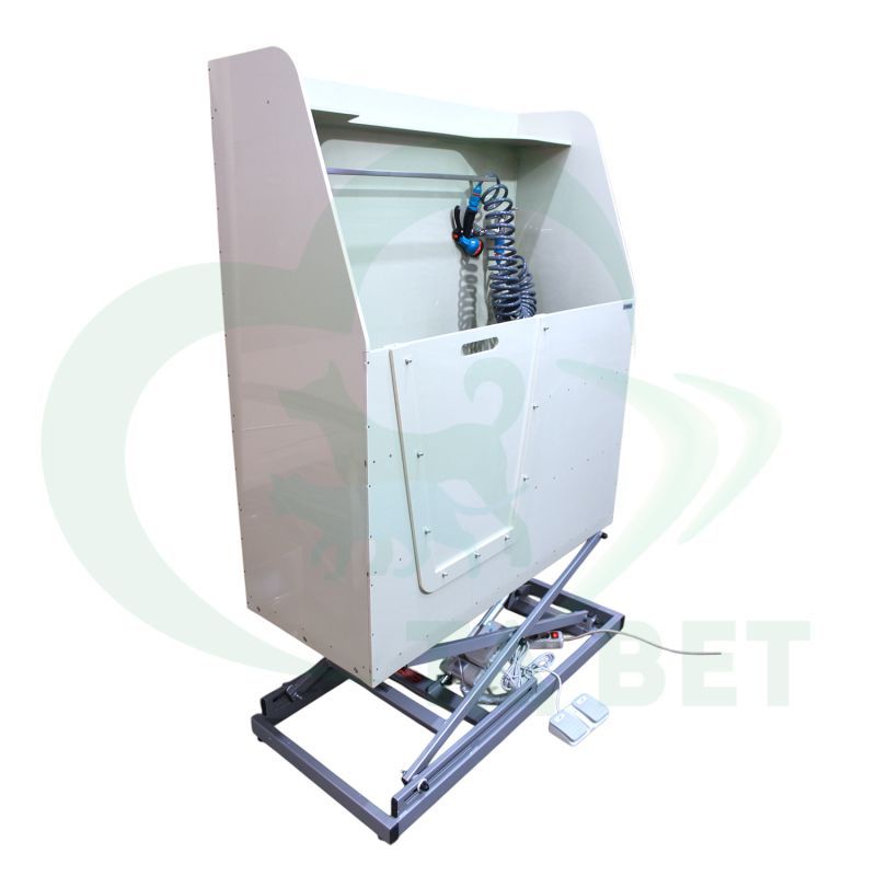 - Система регулировки высоты: Электропривод с пультом управления позволяет плавно изменять высоту положения чаши для удобства работы с животными разного размера.