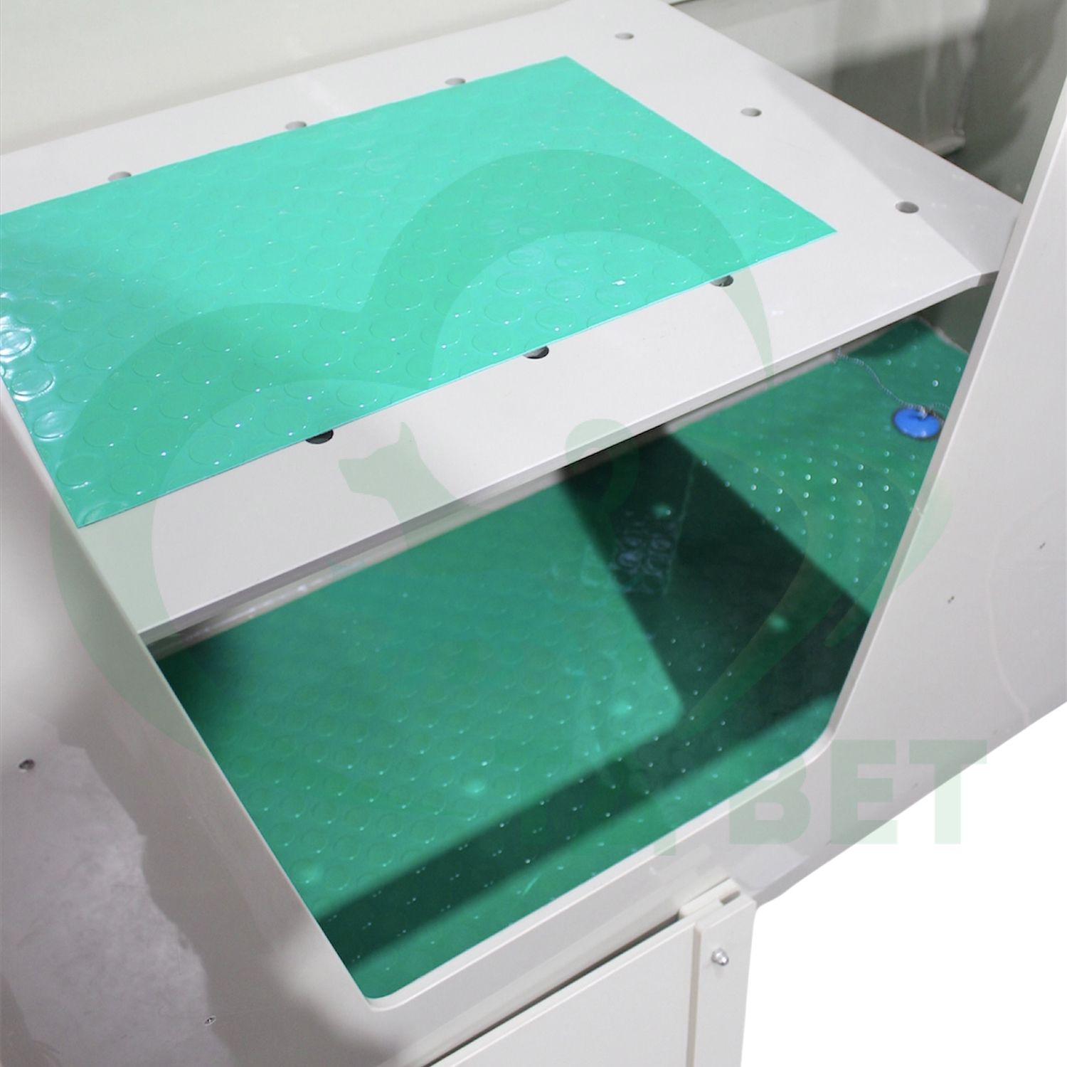 - Бортики: С трех сторон высокий бортик для защиты от брызг, спереди - низкий бортик для комфортного доступа к животному.
