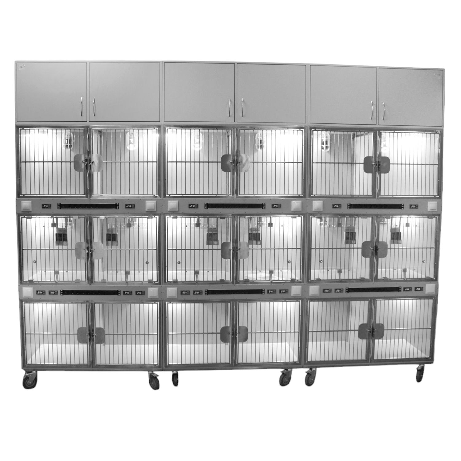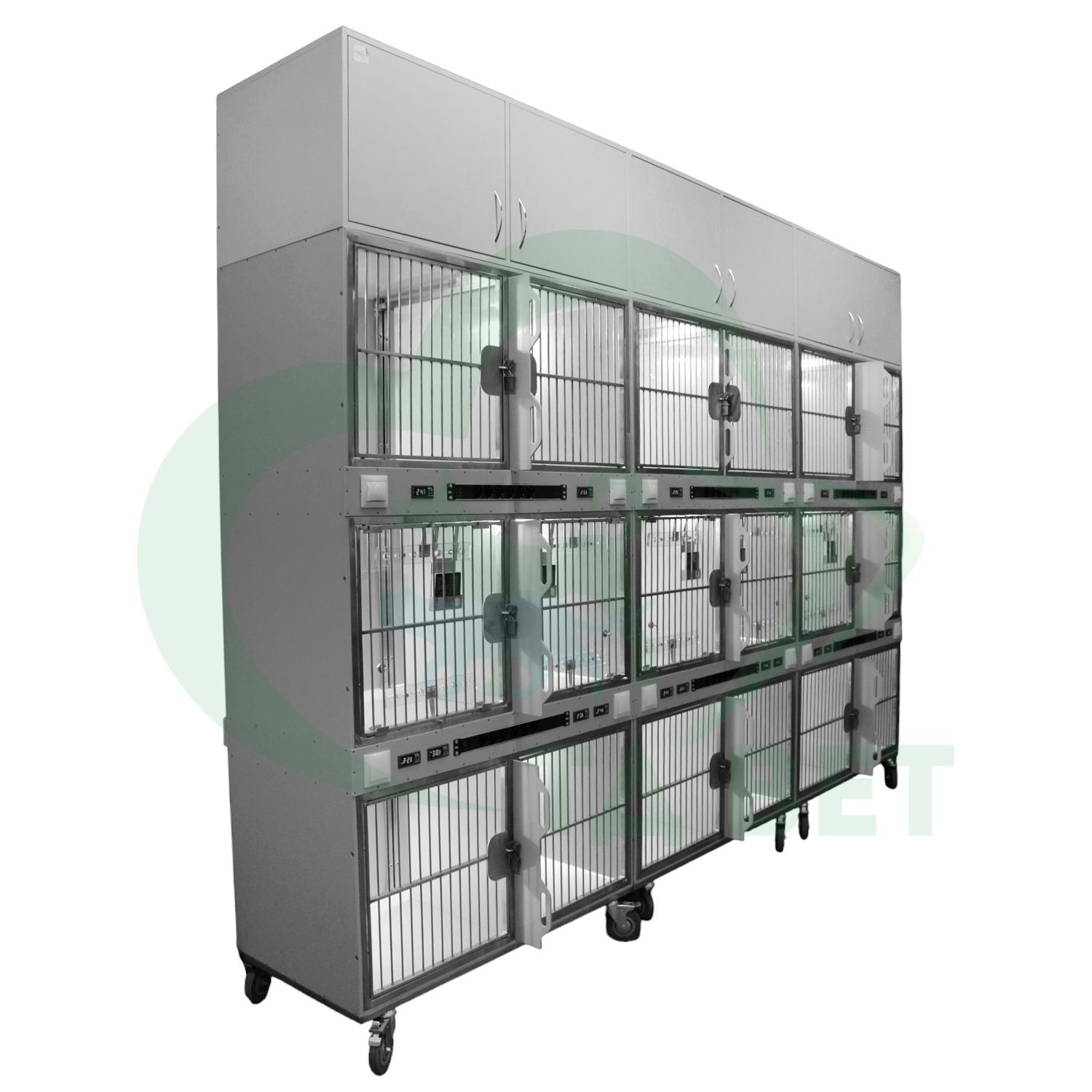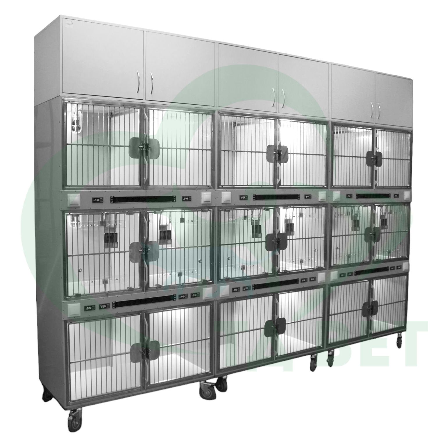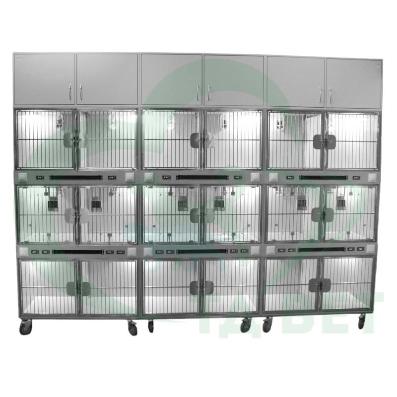 ТД ВЕТ Модуль 18 клеток из полипропилена с ИК подогревом и системой хранения из ЛДСП 3500х600х2520(2680)h с колесами