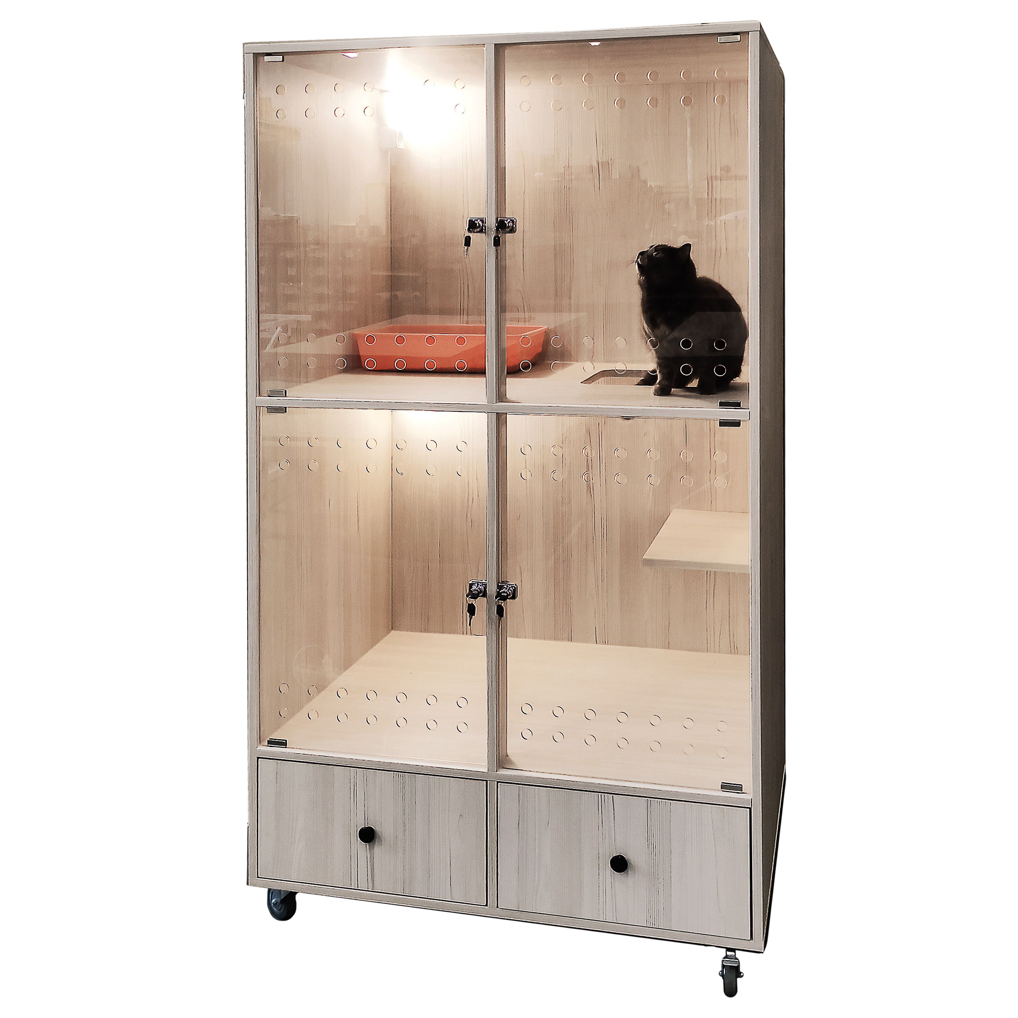 Модуль оборудован двумя ящиками для хранения корма и личных вещей питомца.
