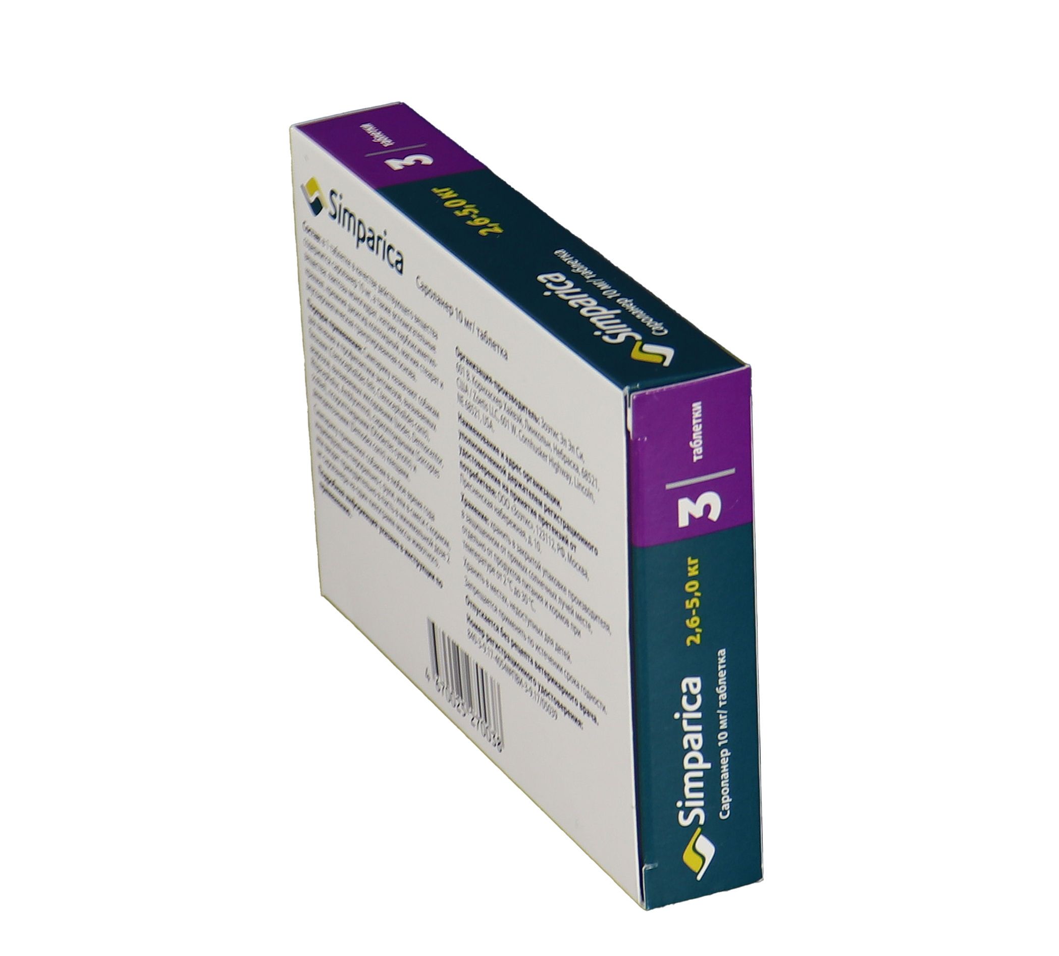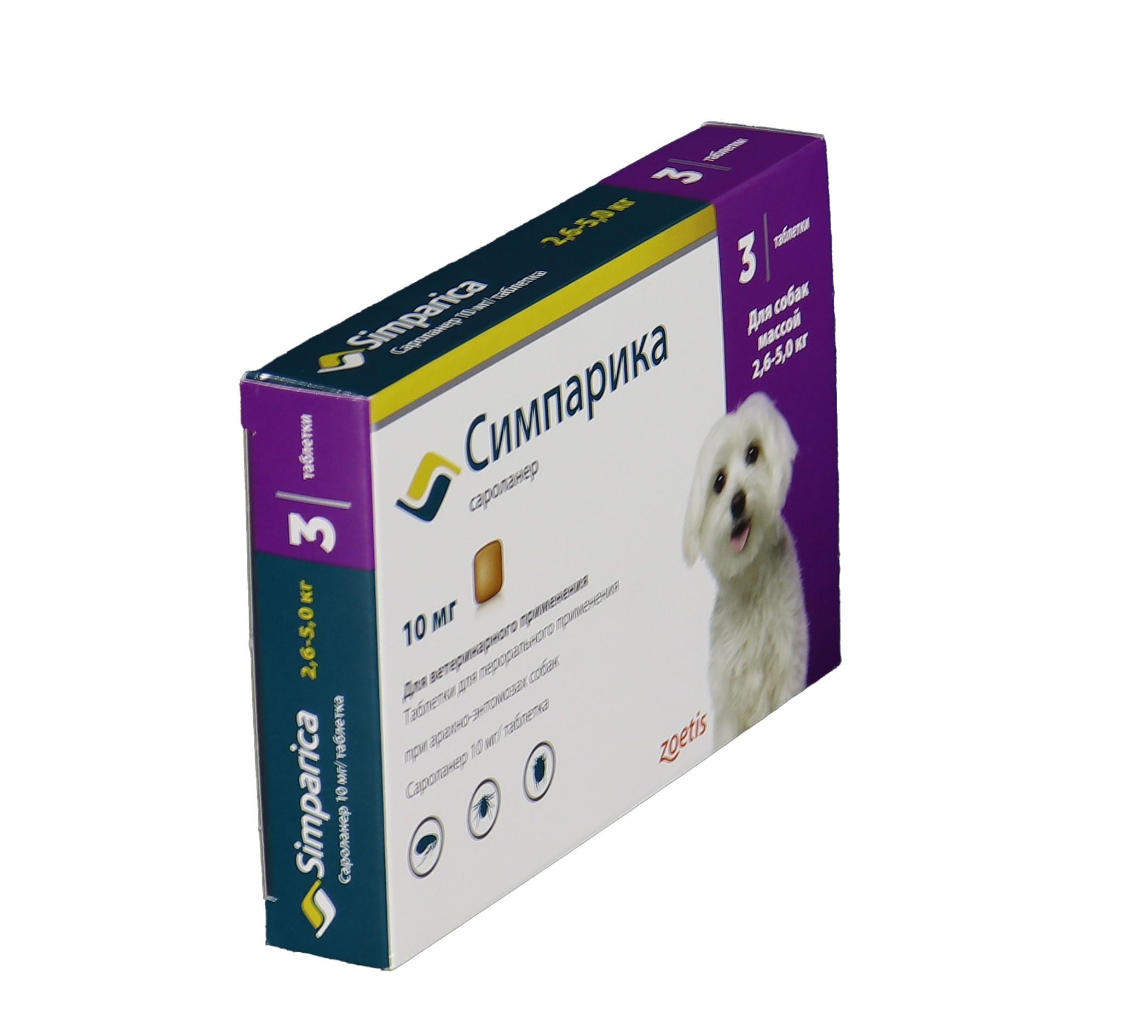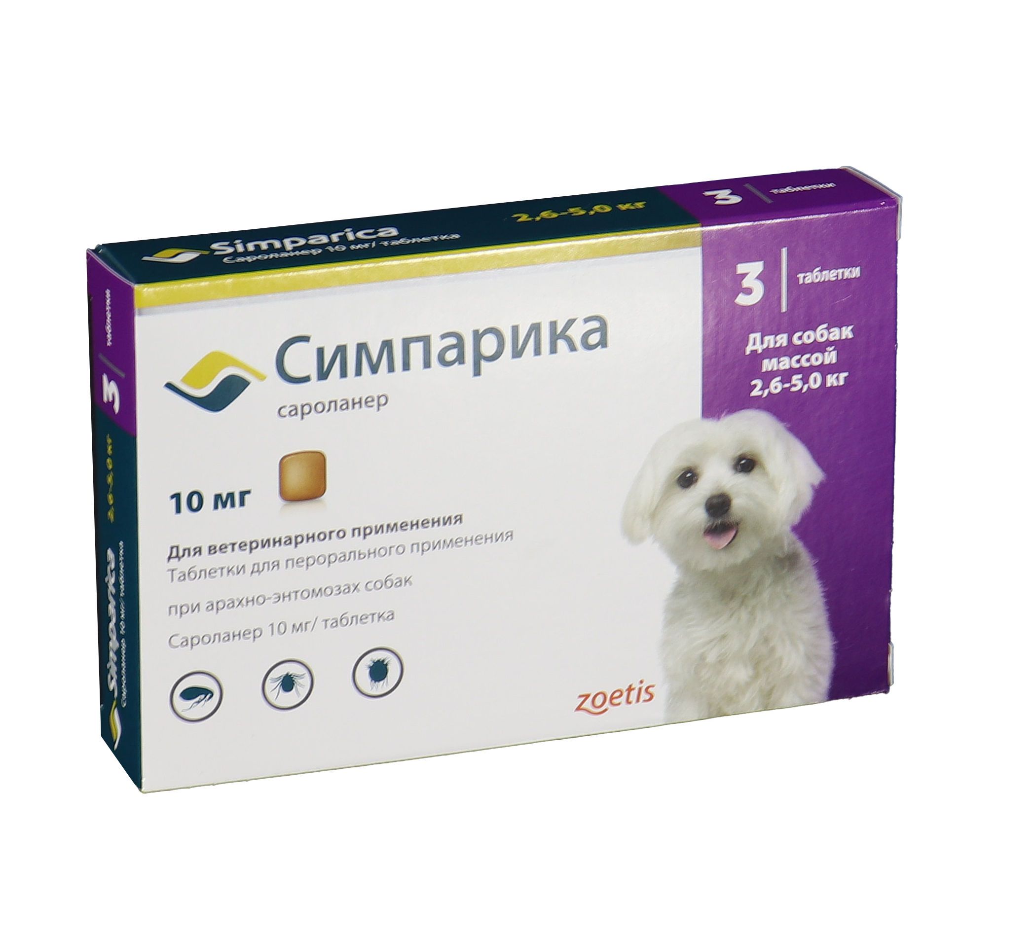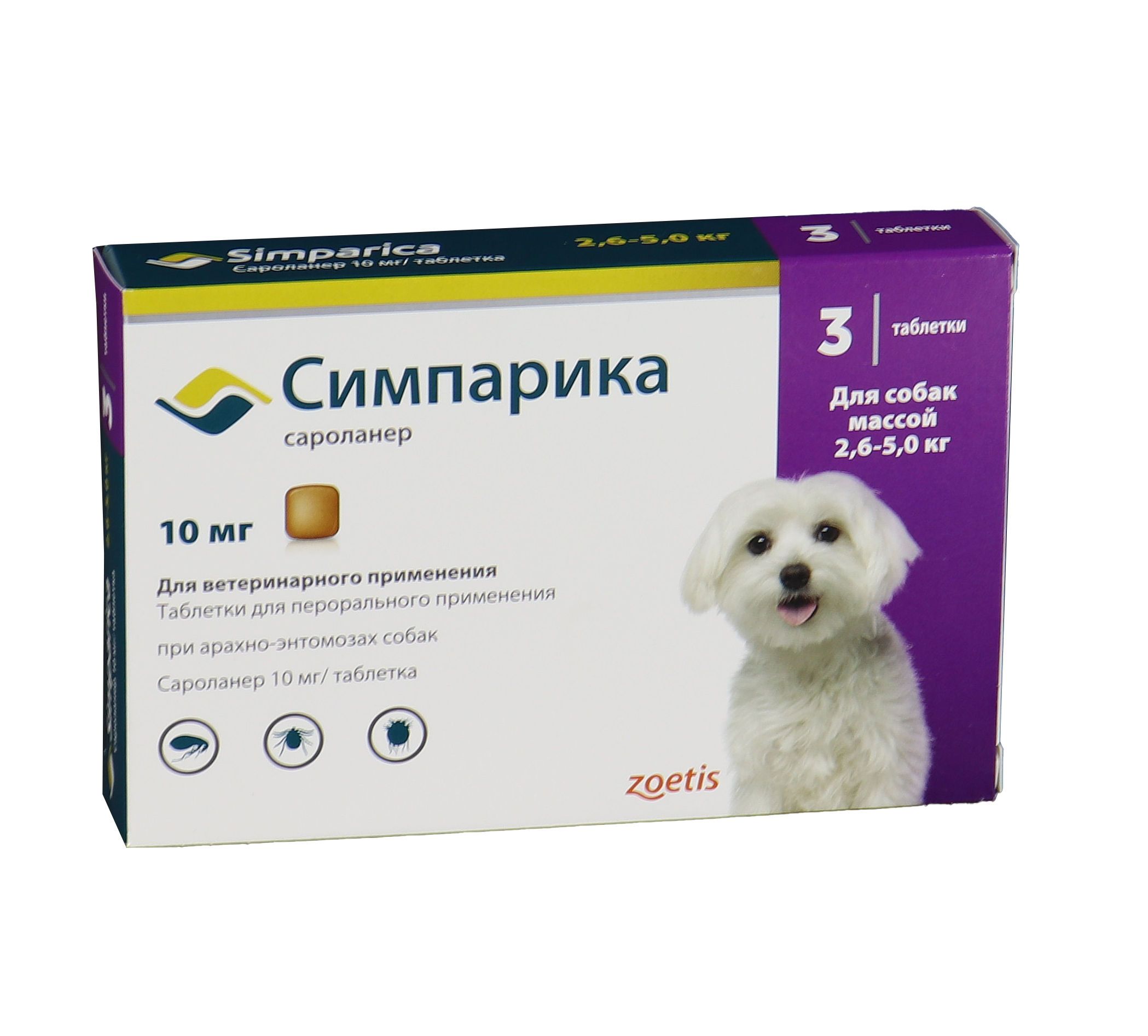 Zoetis Симпарика, жевательные таблетки для собак весом от 2,6-5кг, 10 мг, 3 таб.
